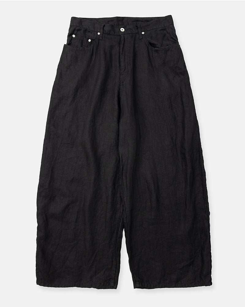 -5ポケットのデニムパンツを限りなく太く構成した、ワイドパンツ