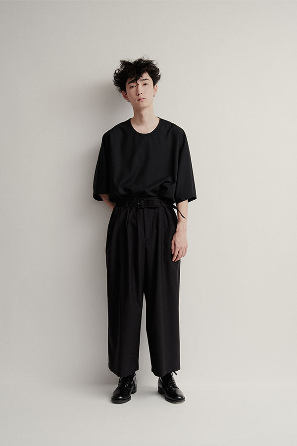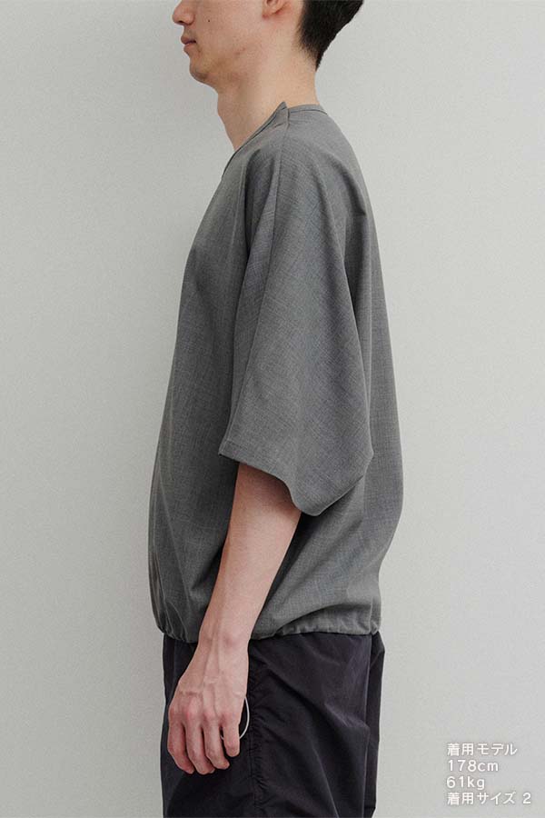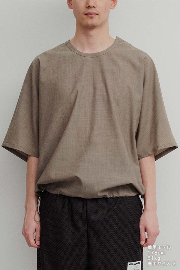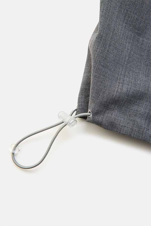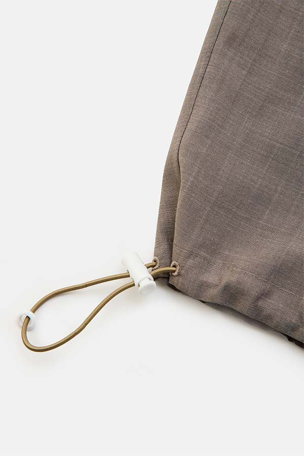 落ち感の良いT/W素材を使用しているため、裾のドローコードを機能させると更に全体にドレープが生まれ表情が変わります。