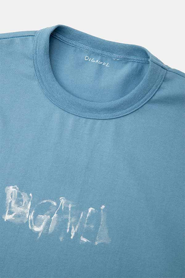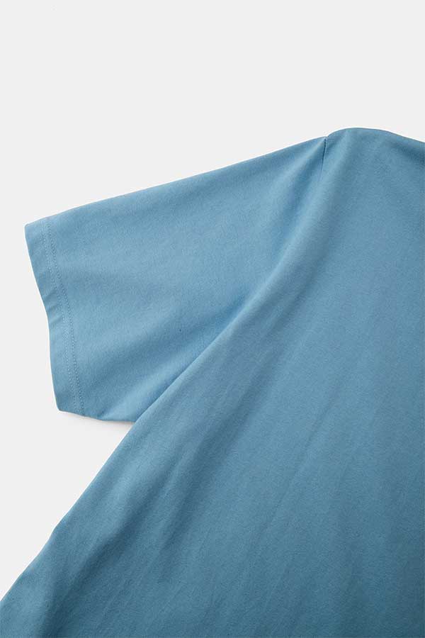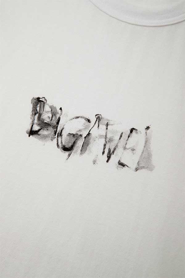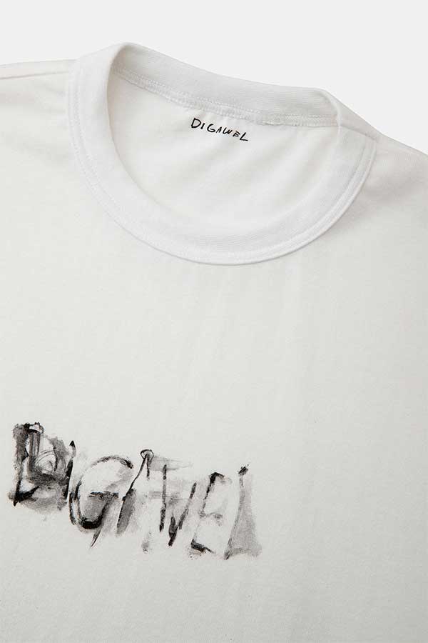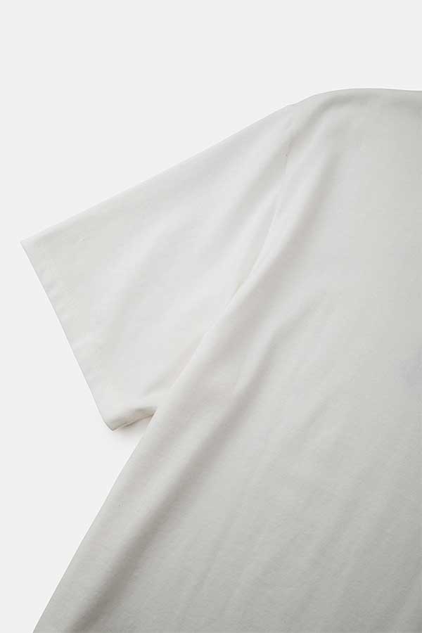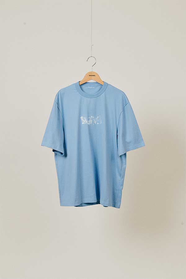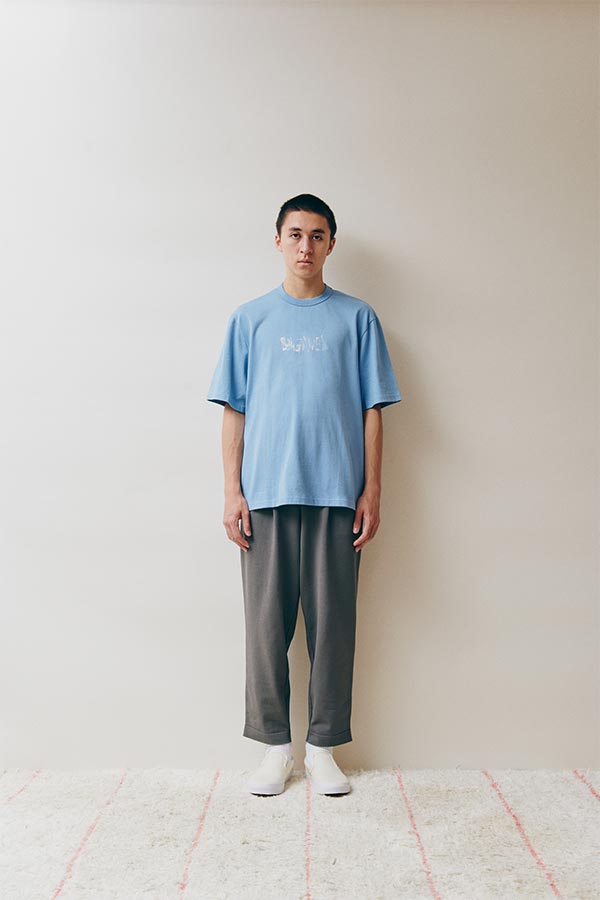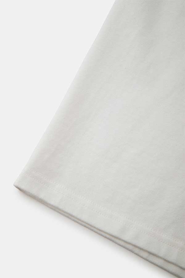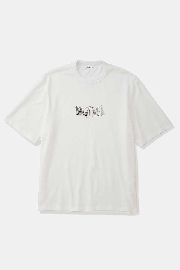 30/2コーマ度詰天竺.襟ぐりスパンリブ.半袖.胸にシルクスクリーンプリント.袖口.裾にステッチ.ブランドネームはプリント.