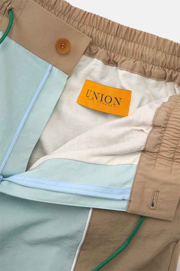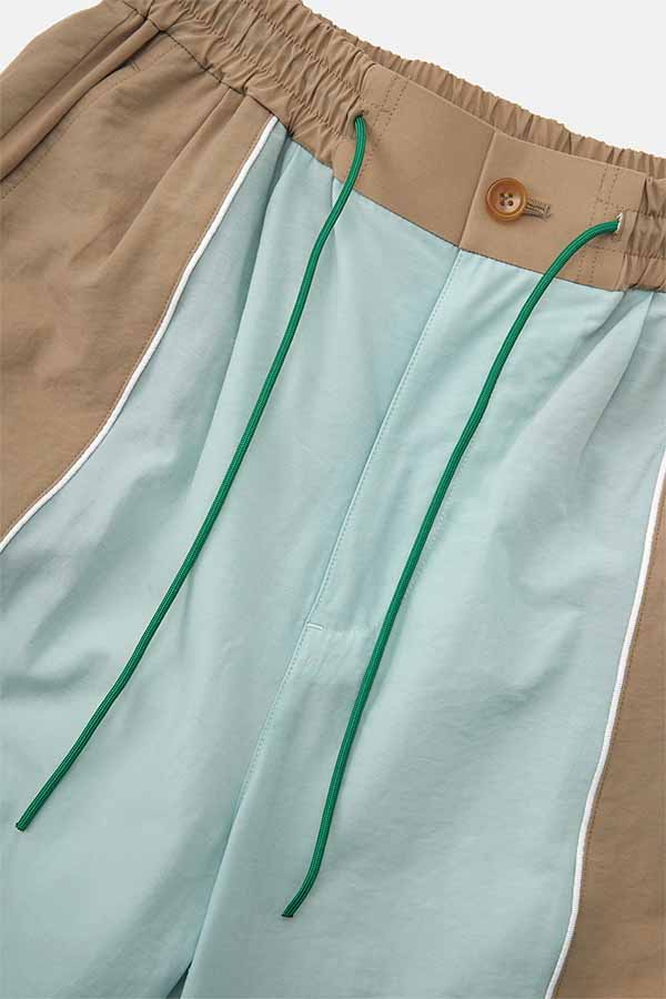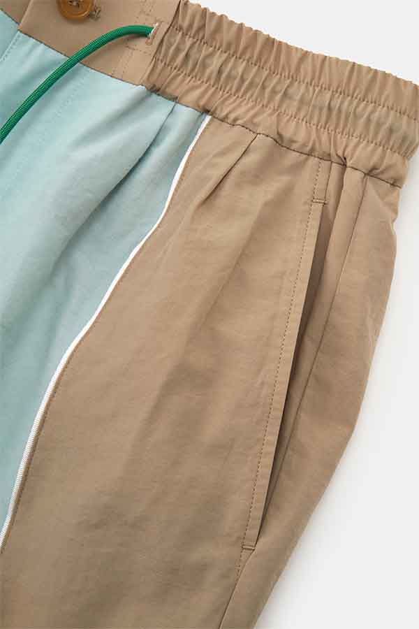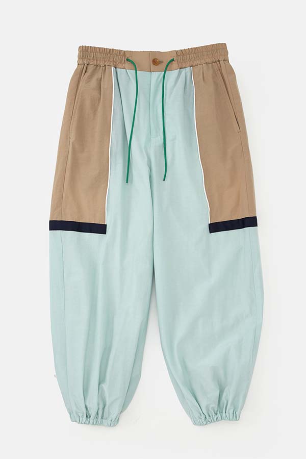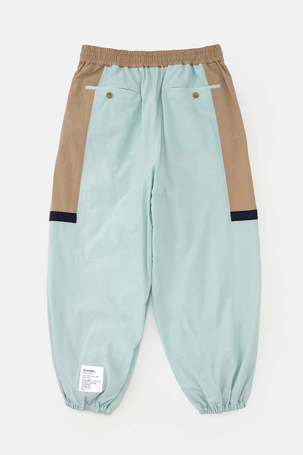 TRAVELIGHT N/C Tumbler.ファスナー開き.ボタン留め.ウエストゴム.スピンドルで調節可能.裾ゴム.フルレングス.左裾裾に品質表示.